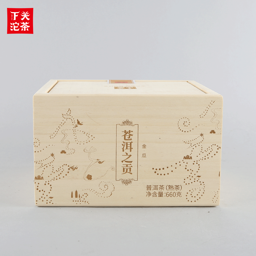 660克布袋木盒裝蒼洱之貢金瓜茶 普洱茶(熟茶)2019